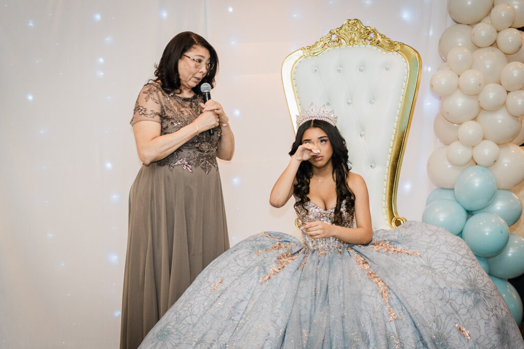 When grandmother took the mic, the room went silent. Her words hit hard—decades of wisdom and love poured into three minutes—and Ana Paulina sat there on her throne trying not to lose it. These are the moments that stay with you long after the party ends.